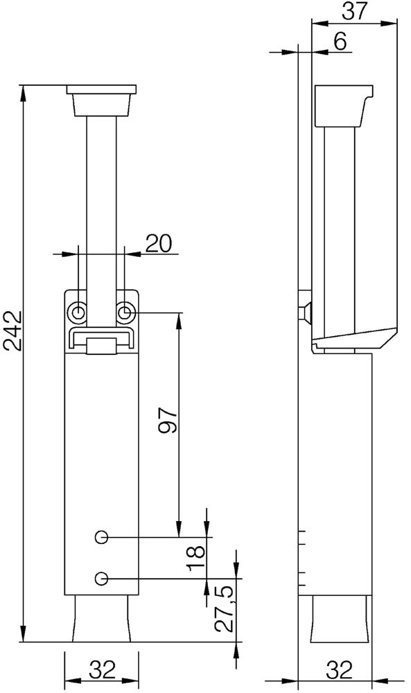 Türfeststeller 3837 0060 22 Zinkdruckguss silber lackiert Hubhöhe 90 mm Türmontage