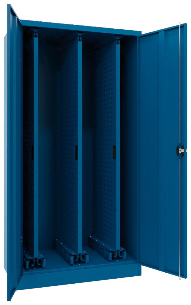 Vertikalauszugschrank, 3 Auszüge mit Lochplatten, BxTxH 1000x600x1950 mm, RAL 5010 E6490174