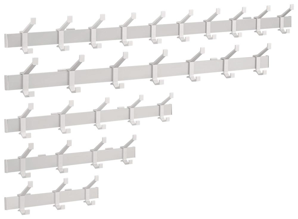 aus Aluminium, F1 matt silber eloxiert · Hakenabstand flexibel · praktisch und funktionell in der Anwendung · sehr stark und einfach zu montieren · inkl. Befestigungsmaterial für die Wand