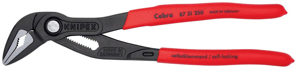 KNIPEX 87 51 180 Cobra® ES Wasserpumpenzange extra-schlank mit rutschhemmendem Kunststoff überzogen grau atramentiert 180 mm