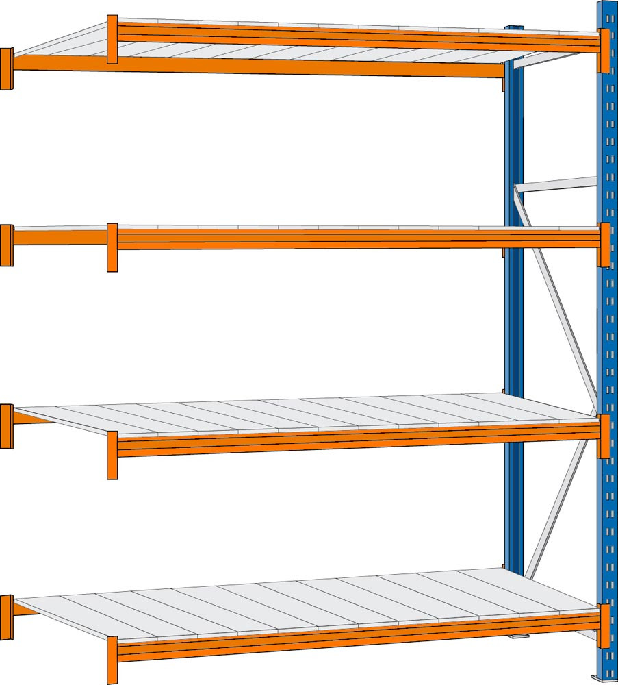 Weitspannregal, Anbaufeld, 4 Ebenen mit Stahlpaneele, BxTxH 1500x600x2500mm, Fachlast 622 kg, Z-Profil 74x30x1,5mm