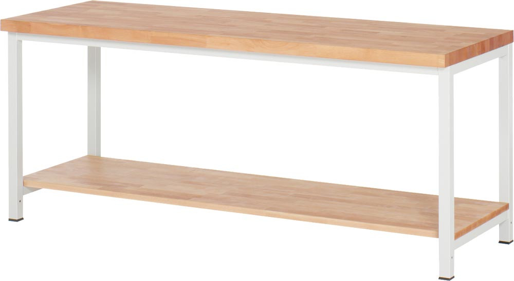 Werkbank, BxTxH 2000x700x840-1040 mm, Platte Buche 40 mm, Ablageboden, RAL 7035 E6490644