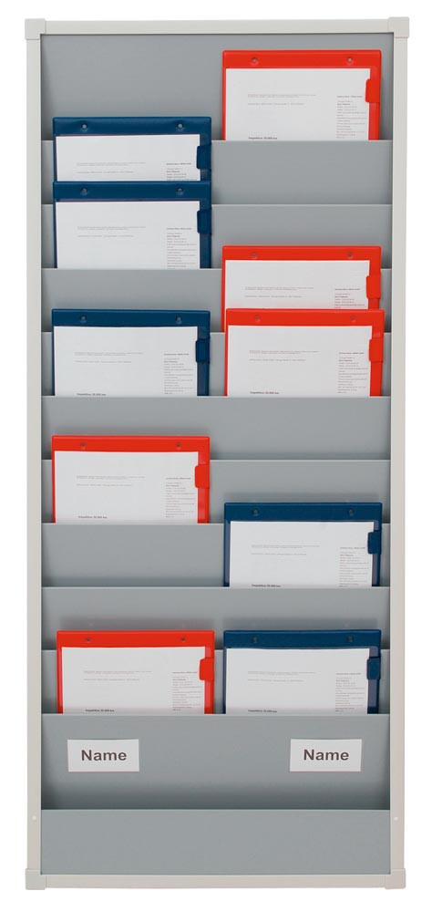 Kunststoff Polypropylen · für 6 bis 30 Auftragstaschen oder Belege DIN A4 · mit Ablagefach, Tafeln beliebig aneinander ansetzbar · Einstecktiefe 210 mm · Sichtrand 96 mm · Lieferung inkl. Befestigungsmaterial