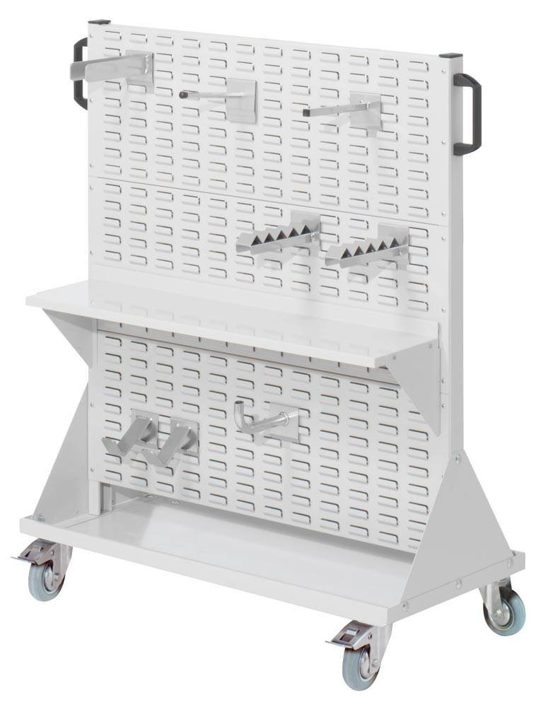 Werkstattwagen, mit 3 Schlitzplatten je Seite, mit Zubehör, BxTxH 1000x500x1230 mm, RAL 7035 E848697