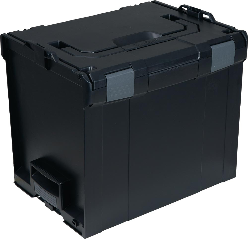 aus schlagfestem ABS · schwarz, anthrazit · mit Bedienteilen grau · Frontgriff · Tragegriff in schwarz · verklick- und stapelbar · Transport und Aufbewahrungslösung für Werkzeuge, Zubehör und Verbrauchsmaterialien in einer BOXX® · perfekt auf die Anforderungen des mobilen Arbeitens abgestimmt, und dies sowohl auf der Baustelle als auch in Fahrzeugeinrichtungen · die L-BOXX® als Kernprodukt ist erhältlich in vier verschiedenen Größen