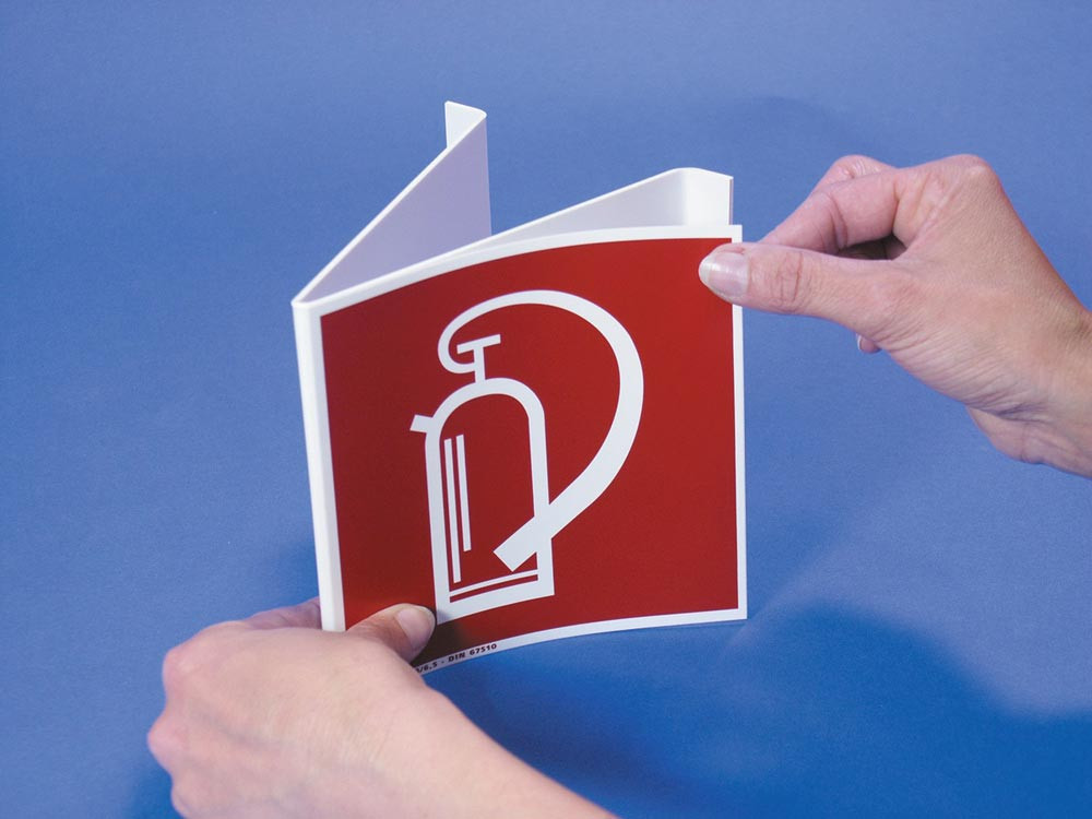 ohne Beschriftung · kann mit beliebigen Brandschutz- und Rettungszeichenschildern im Format 148 x 148 mm beklebt werden · die benötigten Folienschilder bitte extra bestellen