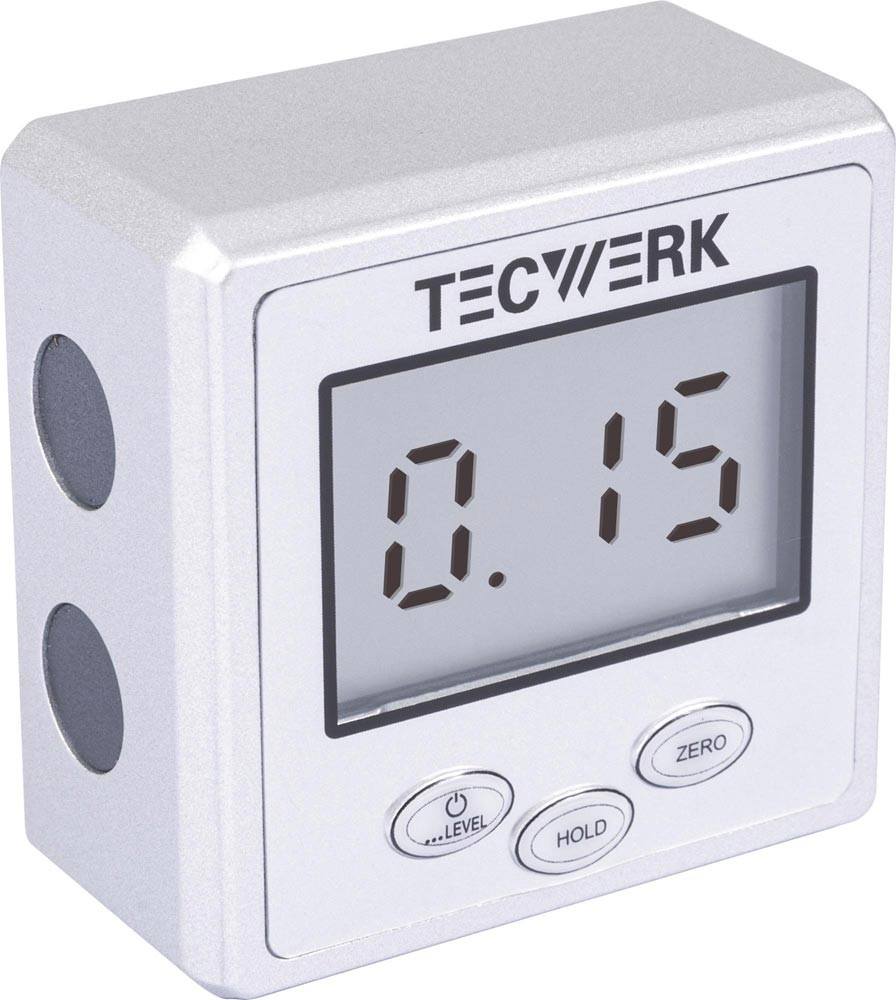 digital · Gerät zur Winkeleinstellung · robustes Gehäuse · eingelassene Magnetpunkte an den Seiten und an der Unterseite · große LCD-Anzeige mit deutlicher Ablesung · Ein-/Ausknopf und Nullstellung in jeder Position möglich · mit Hold-Funktion zum Festhalten des Messwertes · Elektronik schaltet nach ca. 5 Minuten Nichtgebrauch eigenständig ab