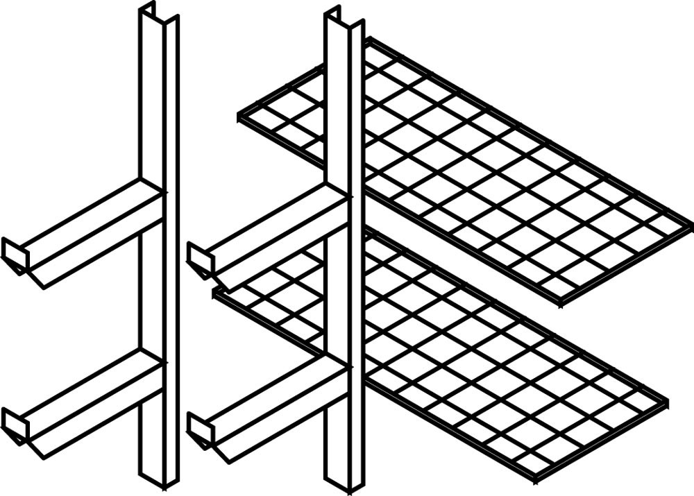 Zubehör zu SafeMaster, Fass-Gitterrostregal komplett, 2 Ebenen mit Gitterrostboden über die ganze Breite, BxT 1200x500 mm